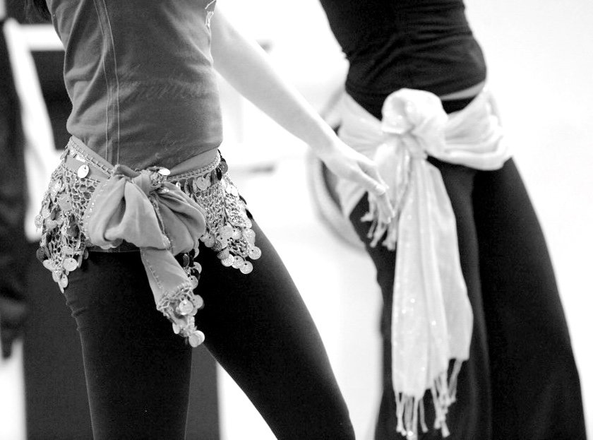 For Bellydance classes, it is recommended to wear close fitting clothing and something around the hips to mark out the movements.