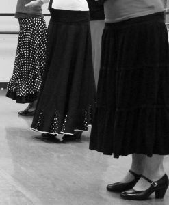 Flamenco shoes (speak to teacher in class about retail options), character shoes or other hard-soled non-marking leather shoe with a 1-2″ heel.