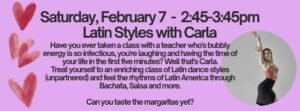 Treat yourself to an enriching class of Latin dance styles (unpartnered) and feel the rhythms of Latin America through Bachata, Salsa and more.